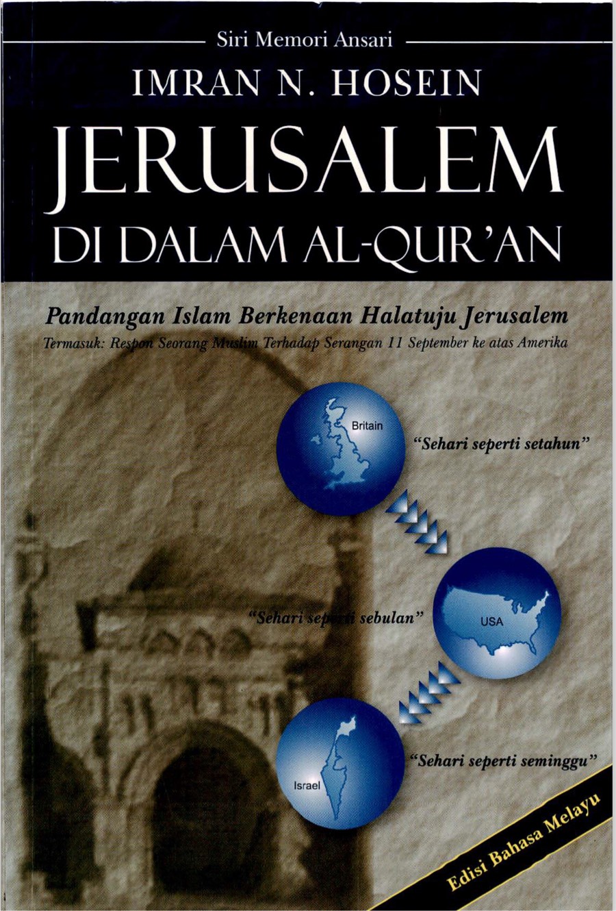 Buku “Jerusalem di dalam Al-Quran” oleh Imran N. Hosein membahas isu Jerusalem dari sudut pandang Islam berdasarkan tafsiran Al-Quran dan hadis. Buku ini cuba menghubungkan peristiwa sejarah, perkembangan politik semasa, dan ramalan eskatologi Islam mengenai masa depan Jerusalem dan umat Islam.
